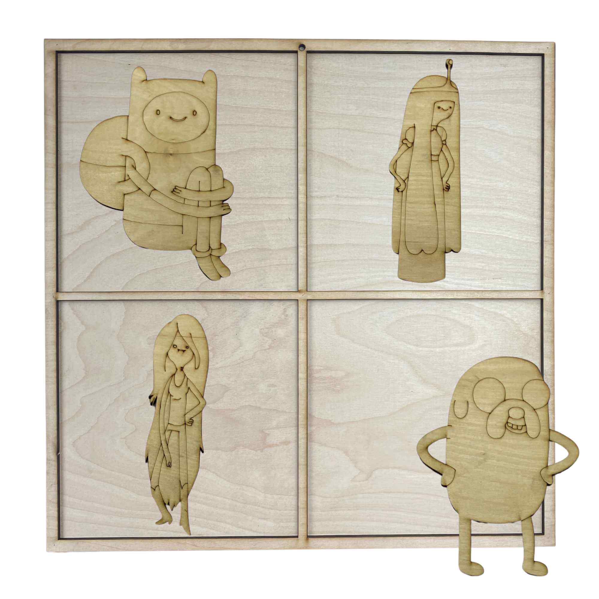 Now you can adventure with Finn the Human, Jake the Dog, Princess Bubblegum or Marceline when you create your own Adventure Time Set wood craft! Incredibly lightweight, cut from 1/4″ thick wood and measures approx. 7-8″ tall. Easily displayed as a wall decoration. A unique gift for any nerd, geek, child or cartoon fan. Perfect and thoughtful gift for that “stay-at-home” person or someone who is rehabilitating.