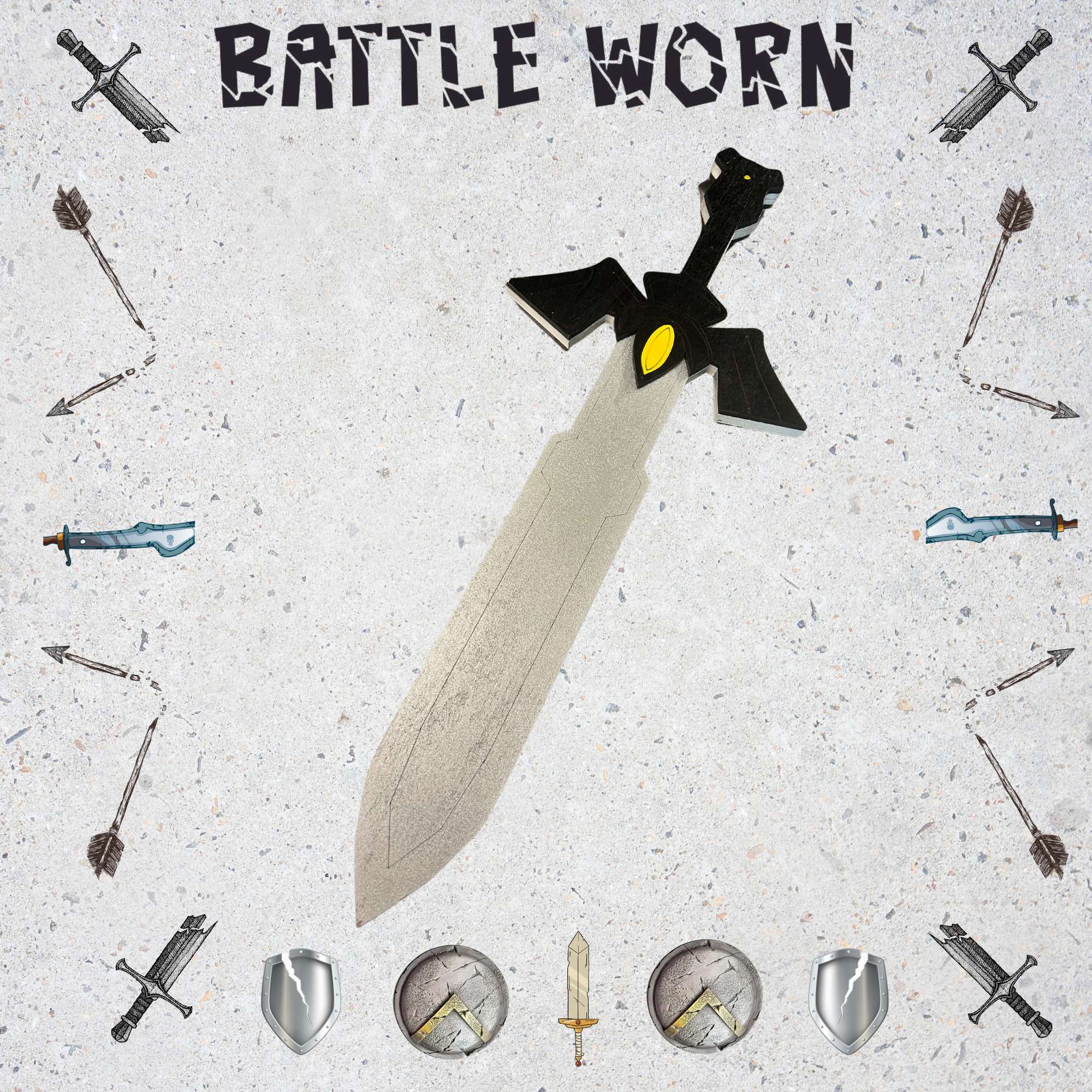 It’s Dangerous To Go Alone. Take This! This battle worn Master Sword has seen countless battles with Ganondorf or maybe just has seen too many cons. Measuring at 23″ long and 9″ at the widest part of the hilt. This sword features minor damage along the sides where holes are visible. The tip of the sword has been chipped and the handle of the hilt has minor issues. Check the product images to see enlarged photos that display any damages.