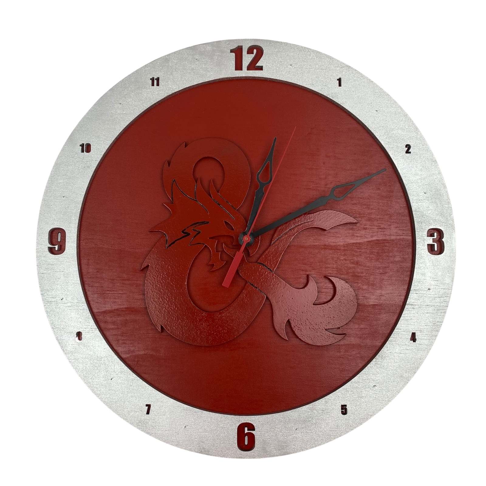What better way to show that you are ready for role playing adventure than with our Dungeons and Dragons (D&D) Build a Clock! It’s sure to be a critical success on your wall as you keep track of the hours flying by as you play. The perfect gift for the tabletop gaming fanatic in your life and finally a purchase for them that isn’t just more dice! The D&D logo is painted red to make sure it stands out on the wall to make sure to let anyone entering know that this is the domain of an adventurer.
