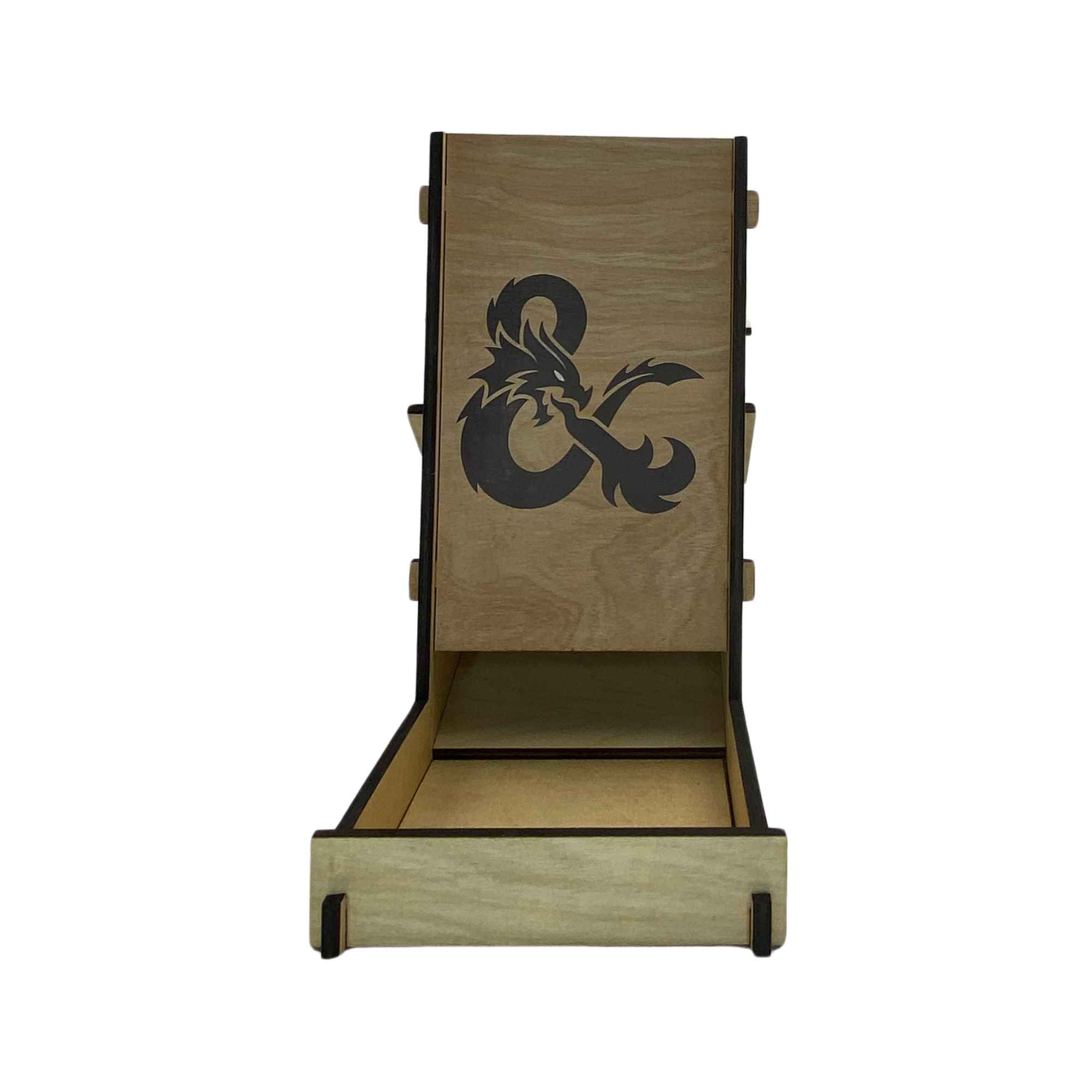 No more cheating with this X-Large D&D Dice Tower; the most popular fantasy tabletop Role Playing Game (RPG) Dungeons and Dragons. The D&D image is a high temperature graphic, pressed directly on the wood. A great conversation piece!