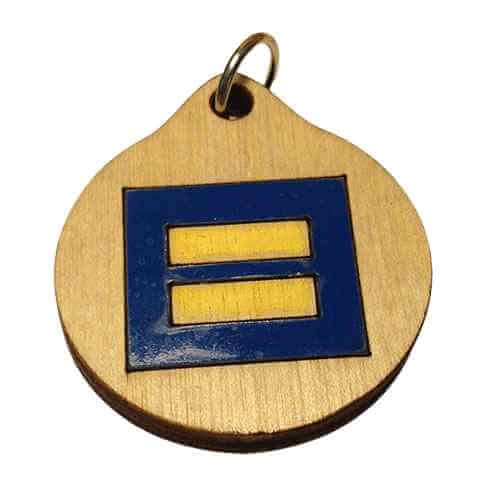 This wood Equality Pendant can be displayed as a necklace or key ring. Represent your acceptance and support of all people with this simple but powerful symbol. Reiterate the idea that everyone has human rights—regardless of race, ethnicity, sexual orientation, or other “difference.” We are all equal.