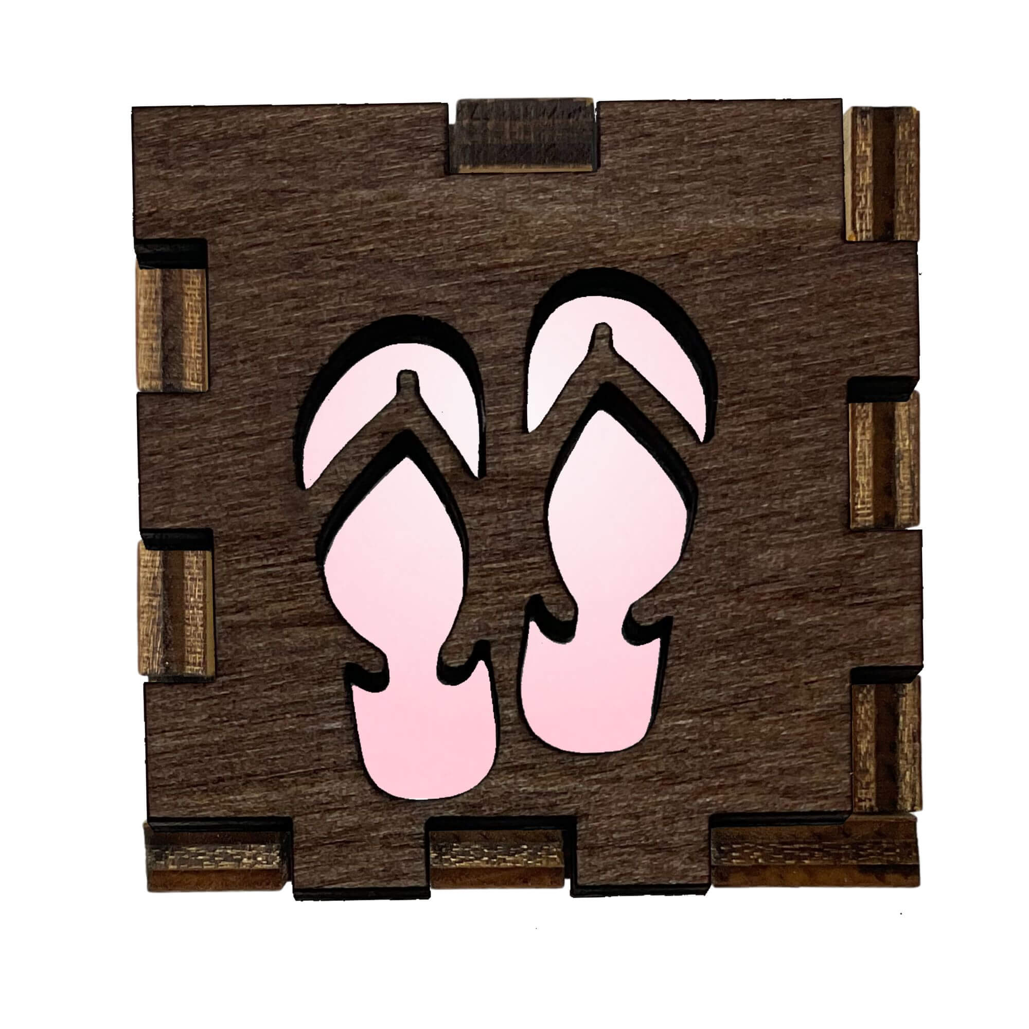 The Flip Flops Light Gift Box is a unique way to show off your ever-changing interests. With interchangeable fronts the box can stay up-to-date with your favorite passions. Likewise they make perfect gifts for the person who seems to have a new hobby, fandom, or trend every week. Easily change out the front by simply removing the lid, place your thumb behind the front and push forward. Exchange with any of our other Tea Light Fronts to produce a completely different looking box. One box, multiple fronts.