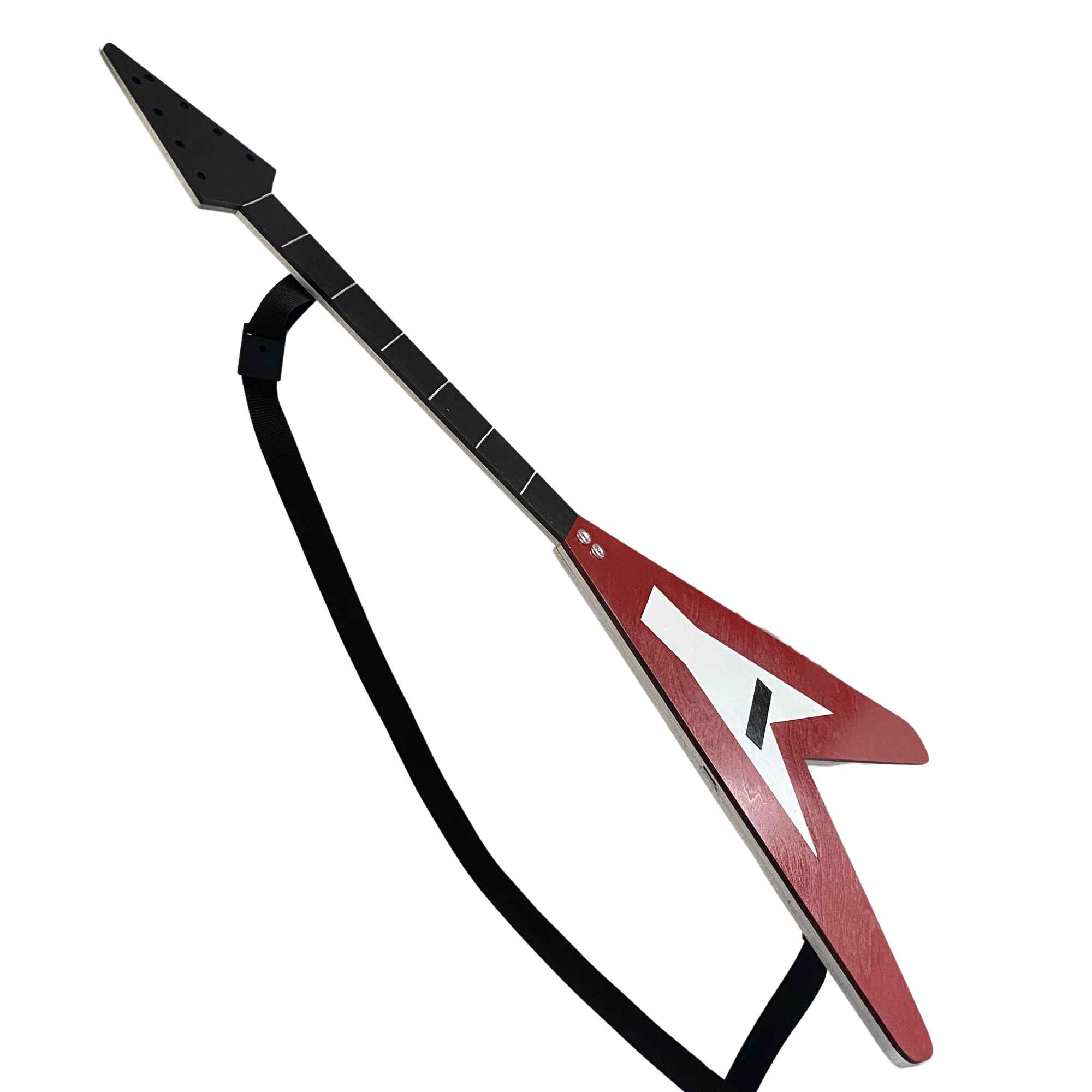 As featured in Five Nights at Freddy’s, we bring you our cosplay inspired replica of the FNAF Bonnie Guitar. This 34″ Guitar is durable and lightweight with an adjustable strap so that it is easy to carry and can last on a long day adventuring at a con or a party, in addition it comes in two pieces so that it is easy to pack and store. Two transparent clips are included so that the neck and head can be put together whenever you’re ready to go.