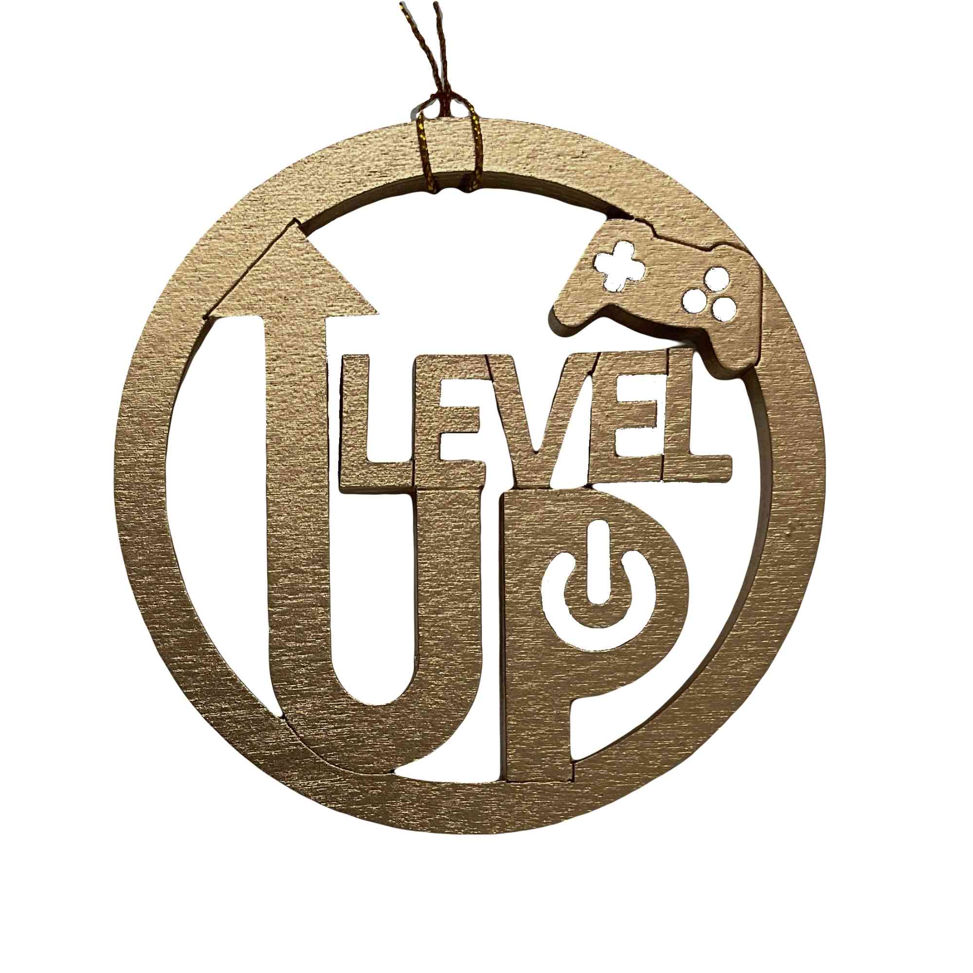 This ornately designed Gamer Ornament or Gift Tag is approximately 3.75″ in diameter and makes a great Christmas tree decoration or gift embellishment. A beautiful keepsake, made from wood and cut through with the front side engraved providing a greater detailed ornament. Both sides are painted a shiny gold and includes a gold metallic cord so it is ready to be hung on your Christmas Tree or utilized as a gift tag. The lightweight design makes it easy to hang.