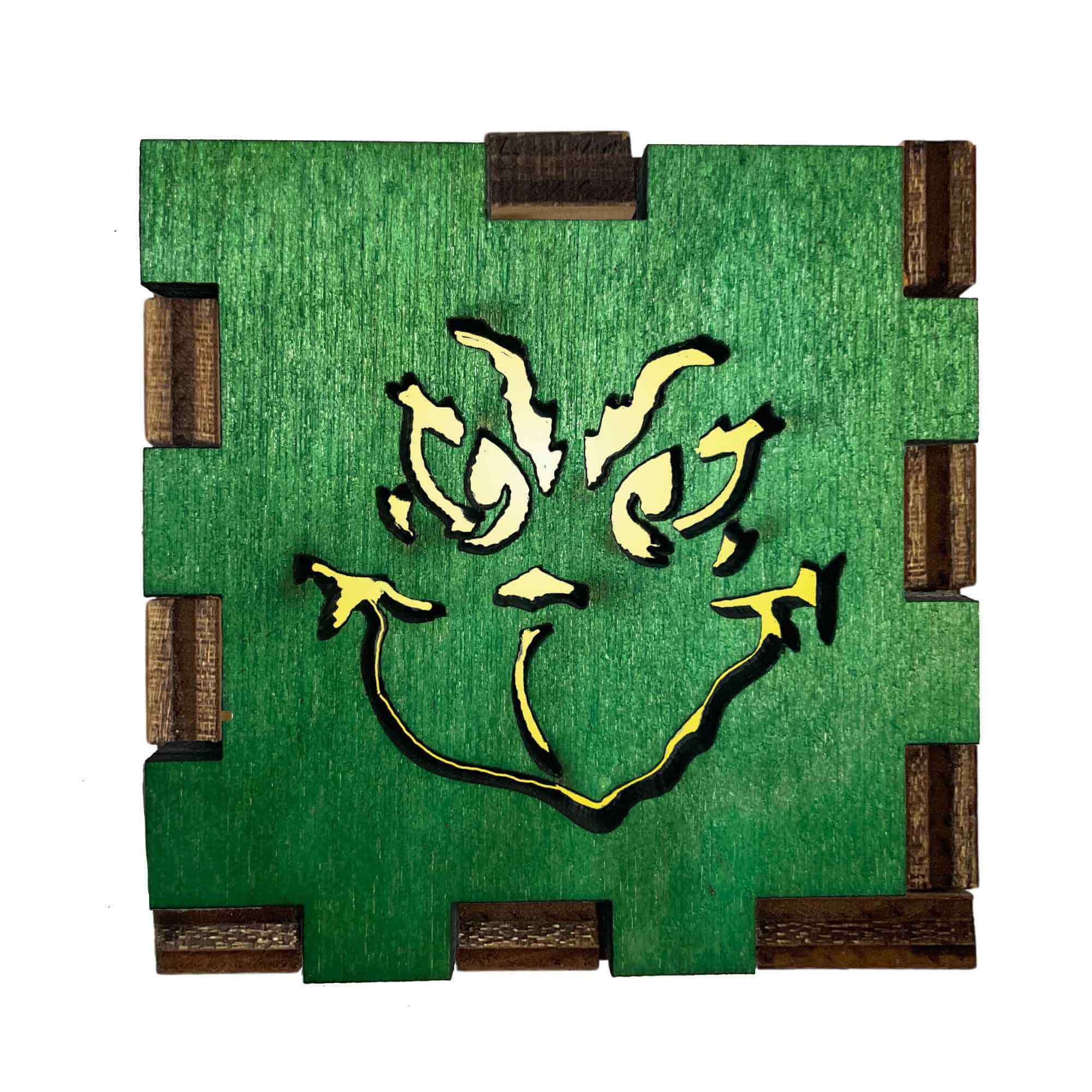The Grinch Tea Light Box is a unique way to show off your ever-changing interests. With interchangeable fronts the box can stay up-to-date with whatever your current favorite fandom is. Likewise they make perfect gifts for the person who seems to have a new hobby, fandom, or trend every week. Easily change out the front by simply removing the lid, place your thumb behind the front and push forward. Exchange with any of our other Tea Light Fronts to produce a completely different looking box. One box, multiple fronts.