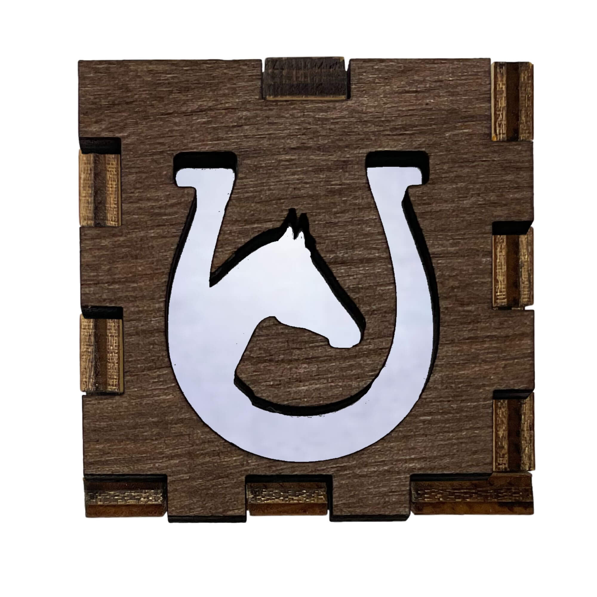 The Horse in Horseshoe Light Gift Box is a unique way to show off your ever-changing interests. With interchangeable fronts the box can stay up-to-date with your favorite passions. Likewise they make perfect gifts for the person who seems to have a new hobby, fandom, or trend every week. Easily change out the front by simply removing the lid, place your thumb behind the front and push forward. Exchange with any of our other Tea Light Fronts to produce a completely different looking box. One box, multiple fronts.