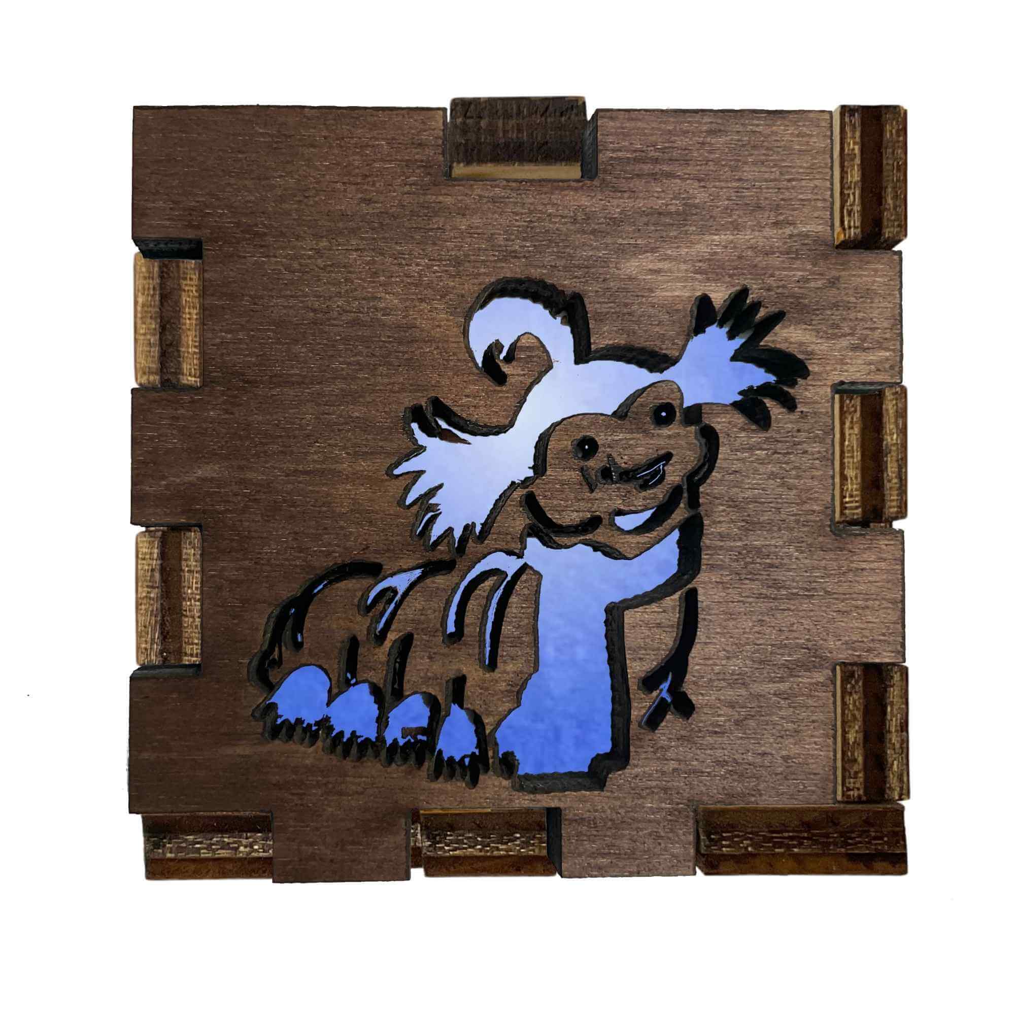 The box comes fully assembled measuring at approximately 2″ on each side making it an easy fit wherever you wish to place it. Whether it be on a bedside table, dresser, work desk, shelf, or anywhere you wish to show it off. The front of the box has an original cut through design, allowing the light to escape through the front, giving a beautiful glow.