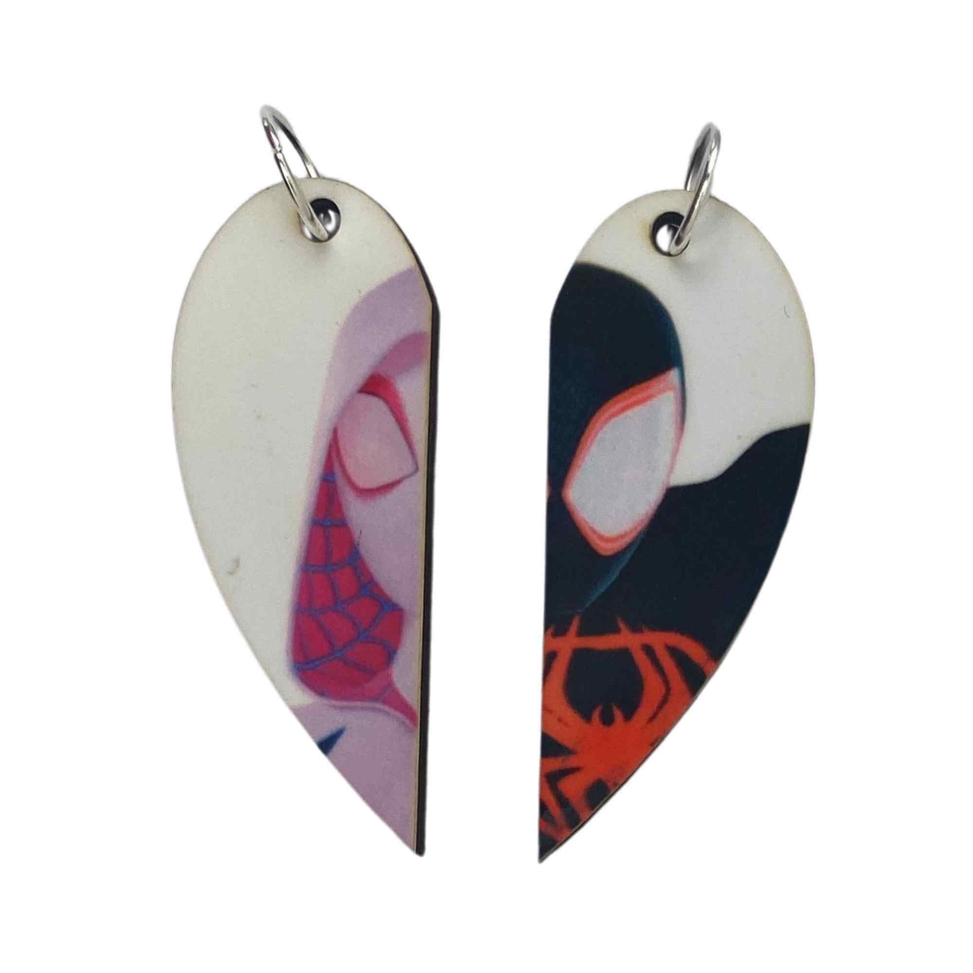 Celebrate the iconic bond between Miles Morales and Spider-Gwen with these stunning matched heart pendants. These 2″ long, ¾” wide, and 1/8″ thick pendants feature vivid sublimated images of Miles and Gwen, each representing half of a heart. Perfect for Spider-Verse fans and those who appreciate the unique connection between these two heroes, these pendants make a meaningful gift for couples or best friends.