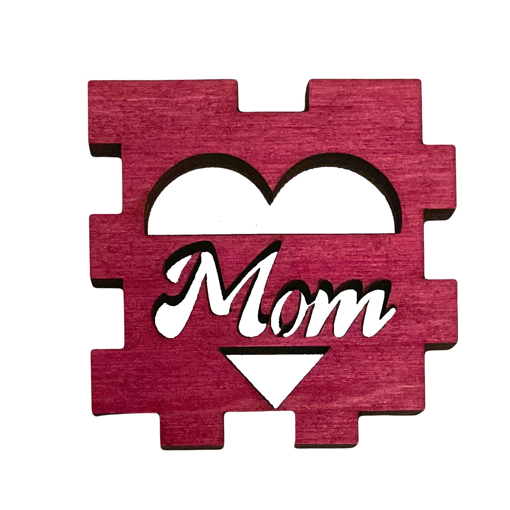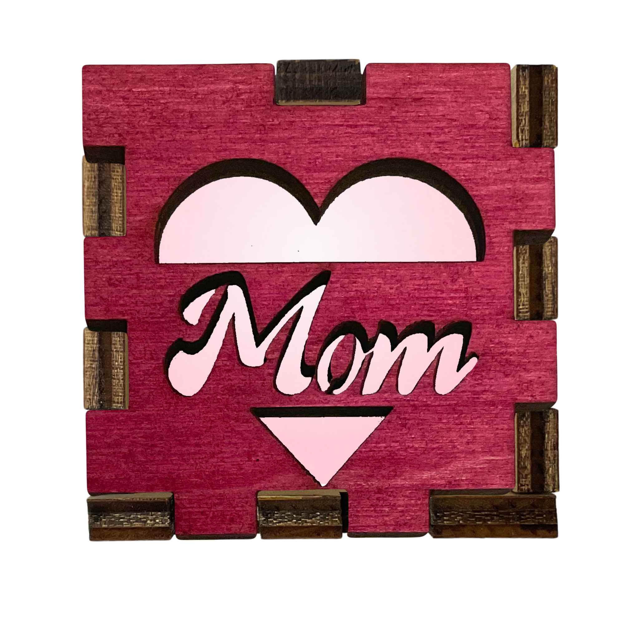 - This box includes a front that is a cut out heart and the words Mom, stained pink