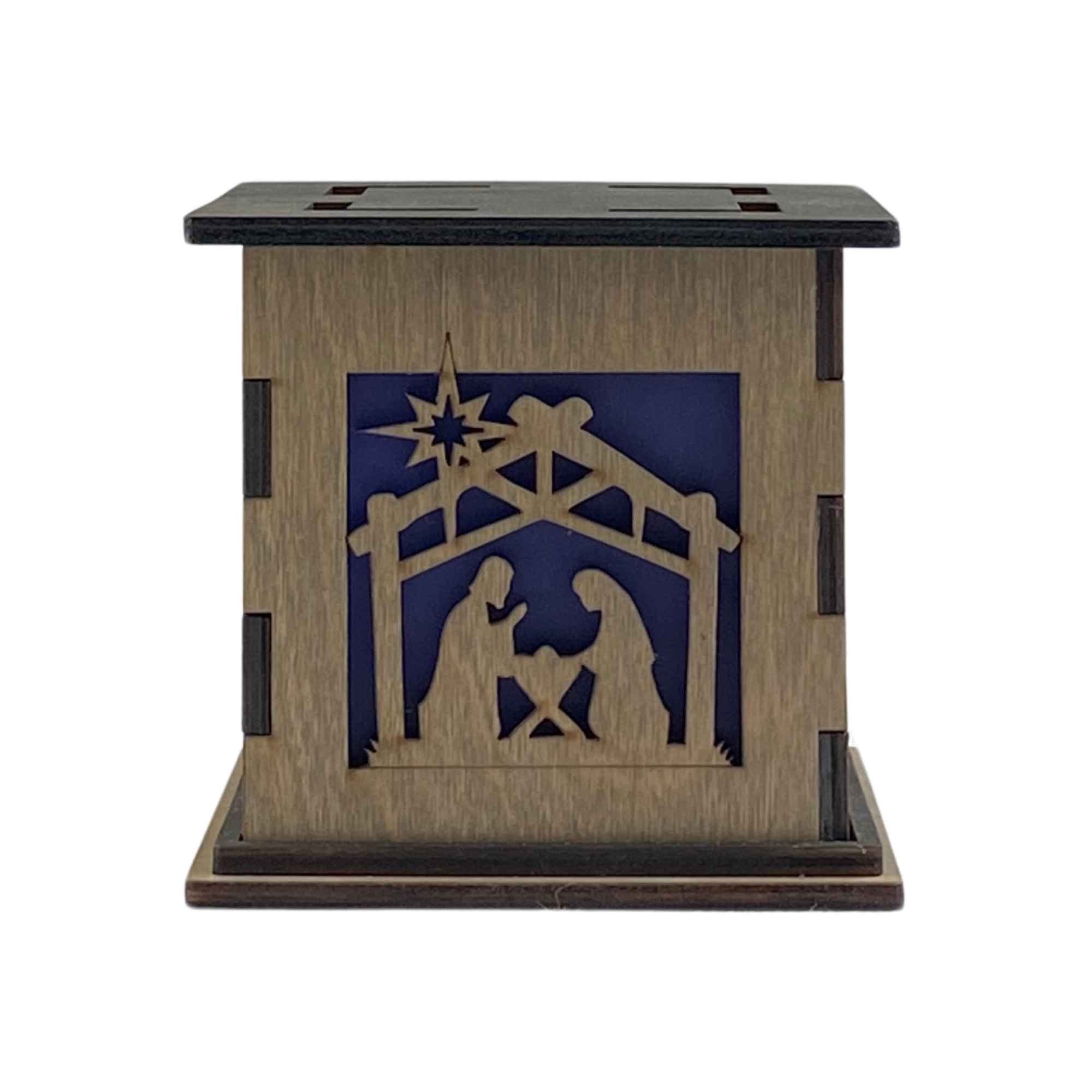 No cords, no fuss. The included battery-operated candle ensures you can place your lighted Nativity Scene box anywhere—no outlet required.