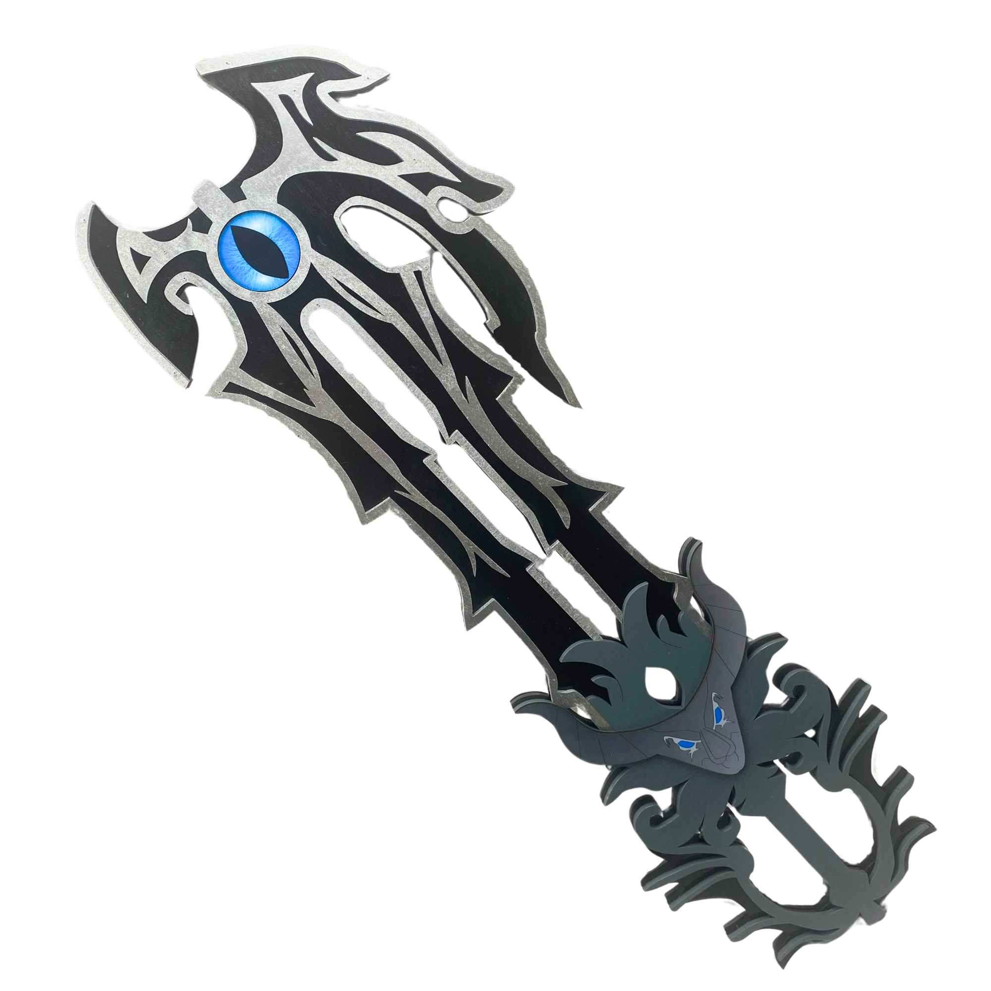 The most ancient surviving keyblade, originally passed down from the Master of Masters, behold the No Name. Now it is our honor to pass No Name onto you. Inspired by the keyblade in the popular video game series, Kingdom Hearts, this wooden replica is 31″ long, 11 1/2″ at its widest point, and lightweight to make for an easy to carry costume accessory or easily hung wall decoration.