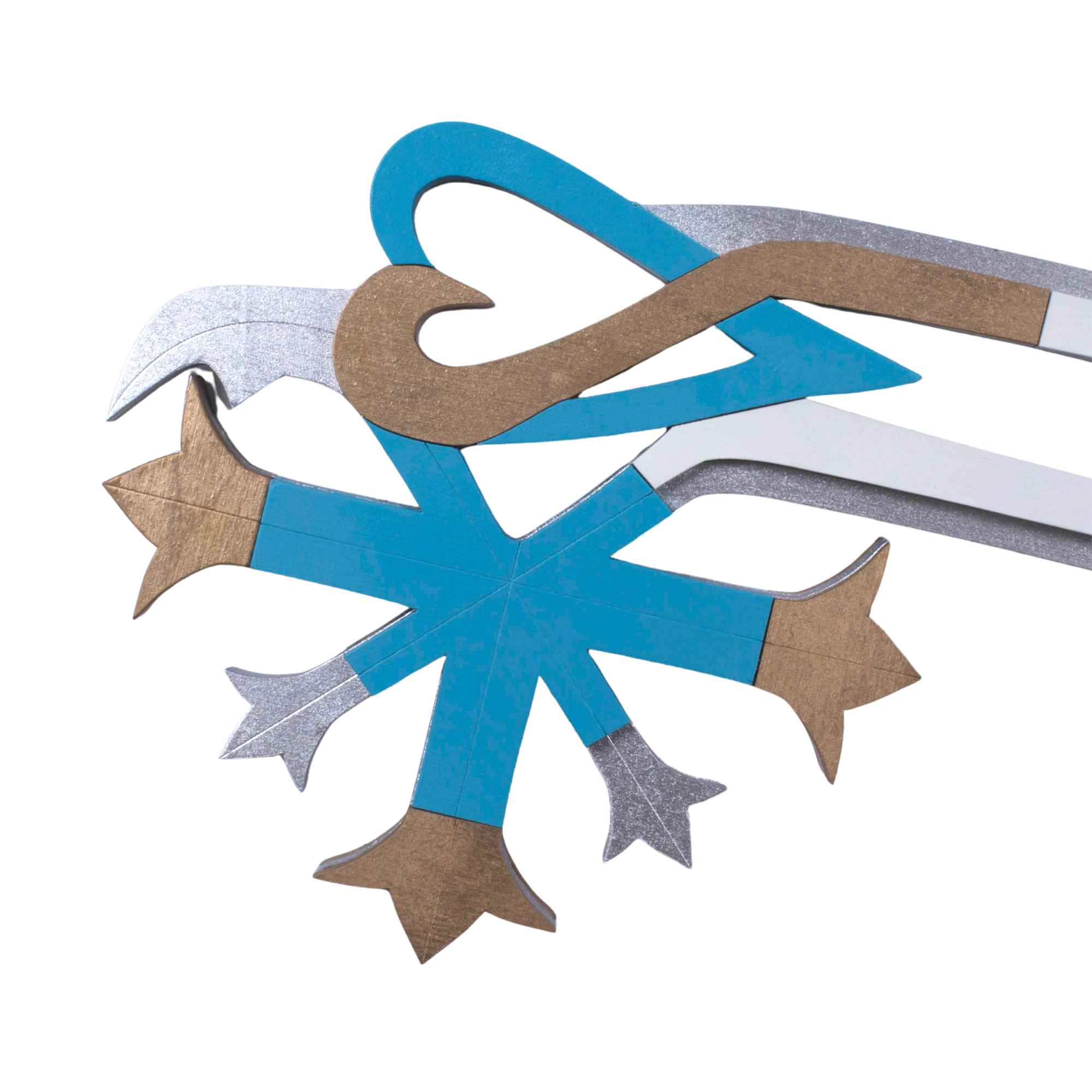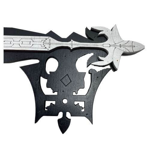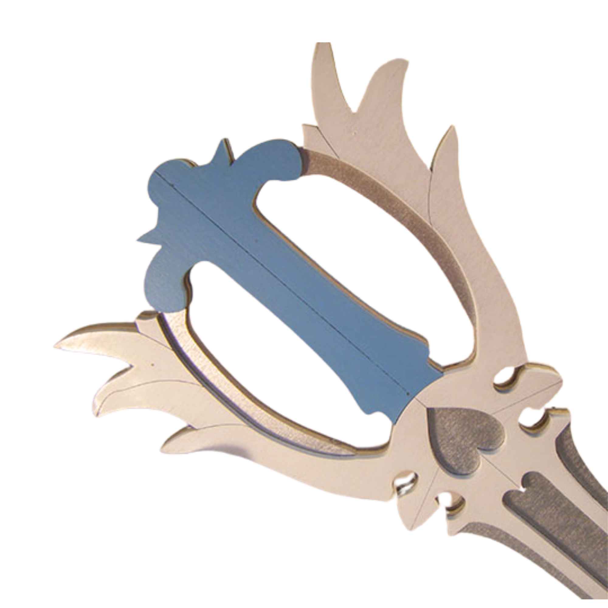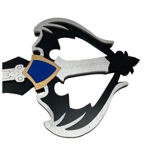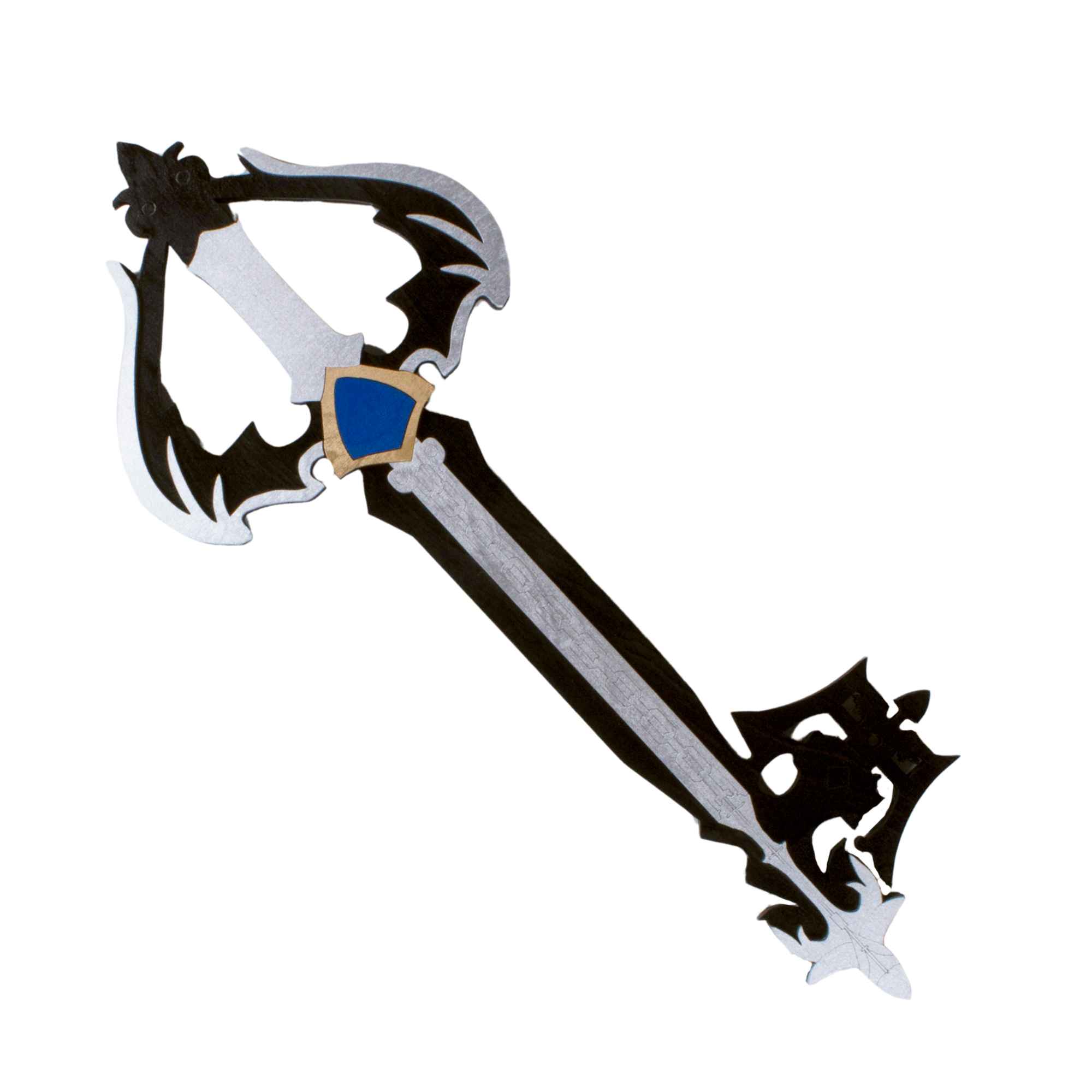 Oathkeeper and/or Oblivion Keyblade is hand crafted from layered ¼” thick wood, the costume replicas are durable and light weight. These layers provide structure and remarkable detail to create a replica as close to the original source as possible. After we have sanded, primed, painted, glued and micro nailed each layer together creating a strong and durable fully immersive cosplay accessory. These are highly decorated replica pieces made for the imagination; we do not encourage actual LARPing as paint and more delicate sections are prone to damage on collisions.