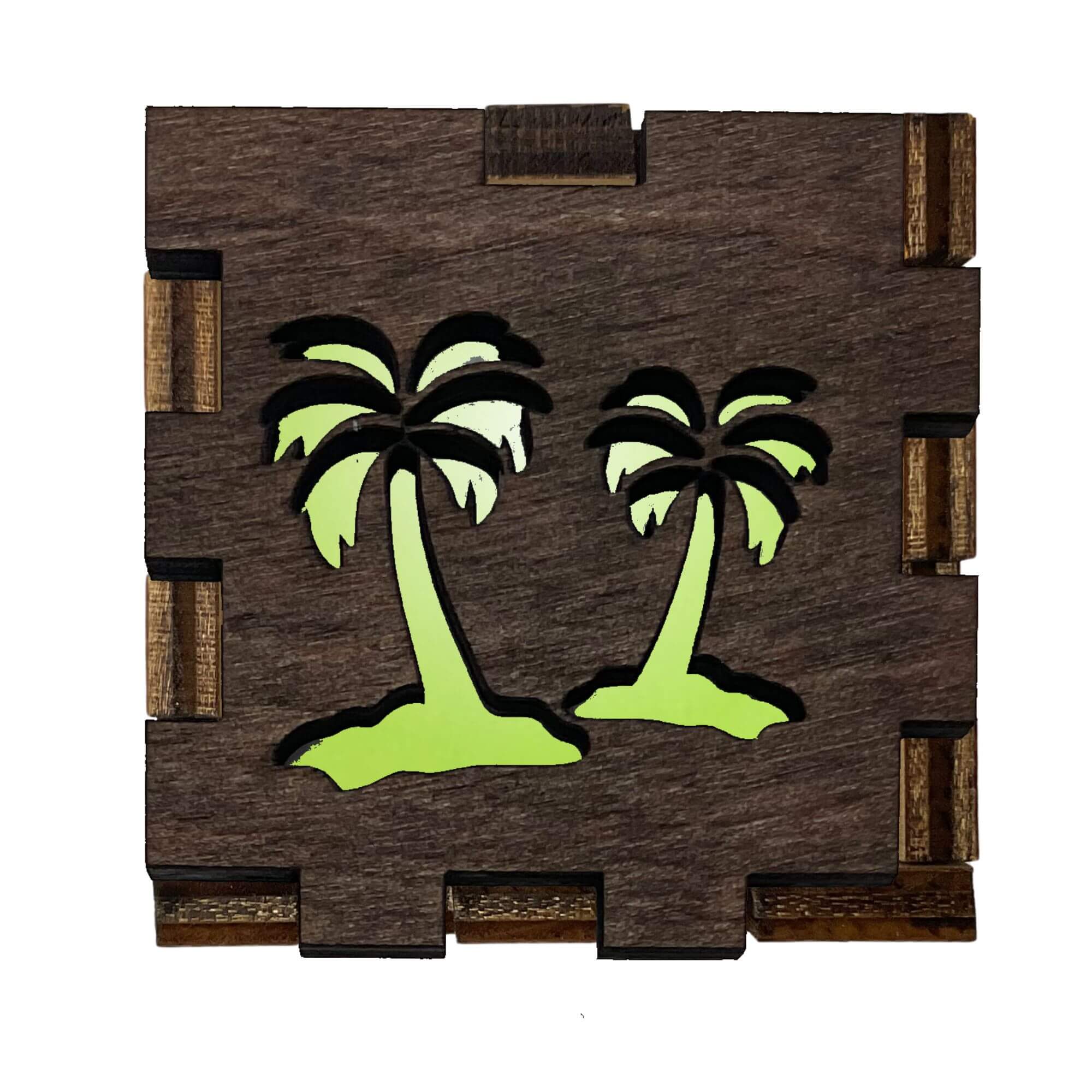 The Palm Trees Light Gift Box is a unique way to show off your ever-changing interests. With interchangeable fronts the box can stay up-to-date with your favorite passions. Likewise they make perfect gifts for the person who seems to have a new hobby, fandom, or trend every week. Easily change out the front by simply removing the lid, place your thumb behind the front and push forward. Exchange with any of our other Tea Light Fronts to produce a completely different looking box. One box, multiple fronts.