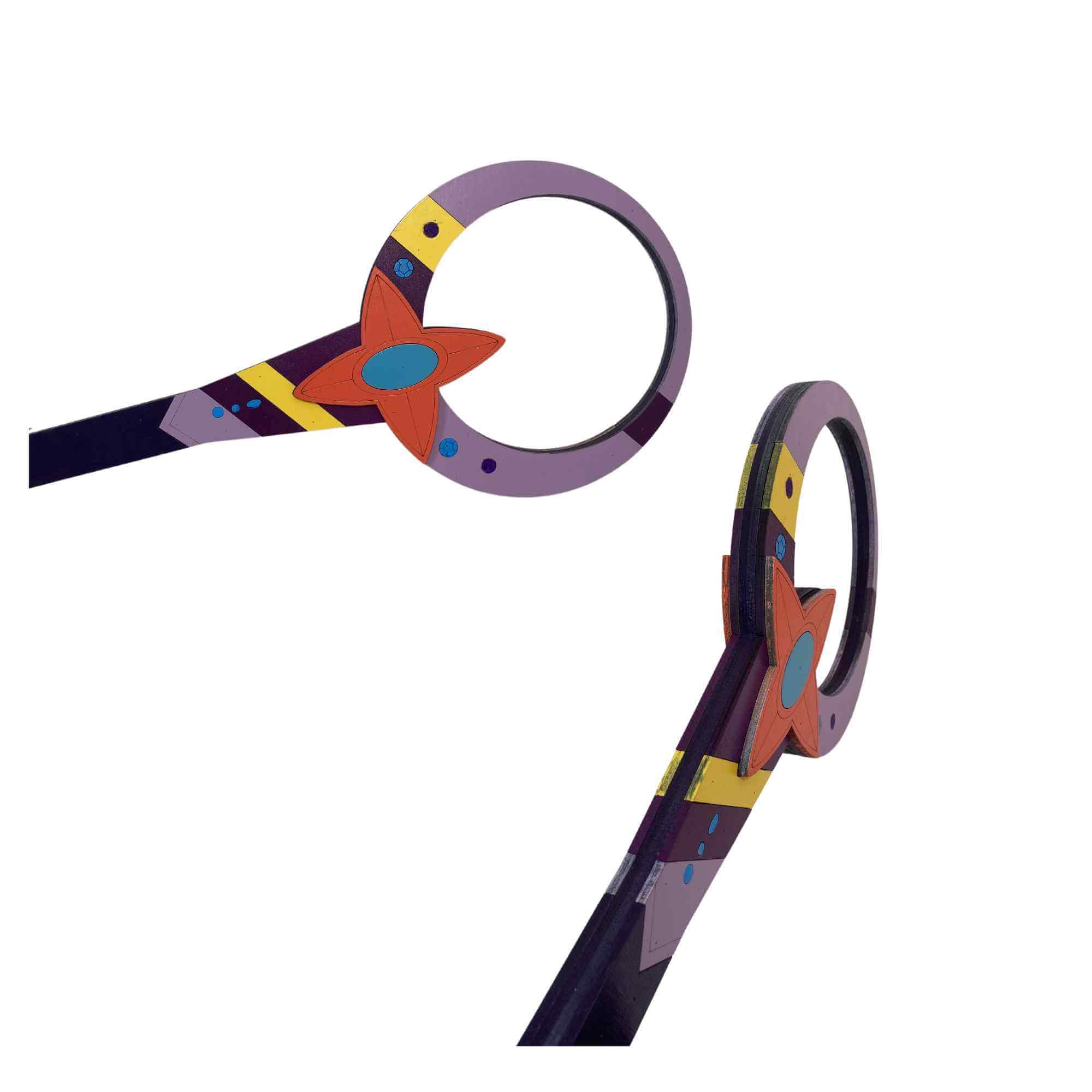 Princesses of Power Glimmer Staff costume replica is durable and lightweight. Hand crafted from layered ¼” thick wood, providing structure and remarkable detail to create a replica as close to the original source as possible. Specifically we sand, prime, paint, glue and micro nail each layer together creating a strong and durable fully immersive cosplay accessory. Subsequently creating a highly decorated replica piece made for the imagination. However, we do not encourage actual LARPing as paint and more delicate sections are prone to damage on collisions.