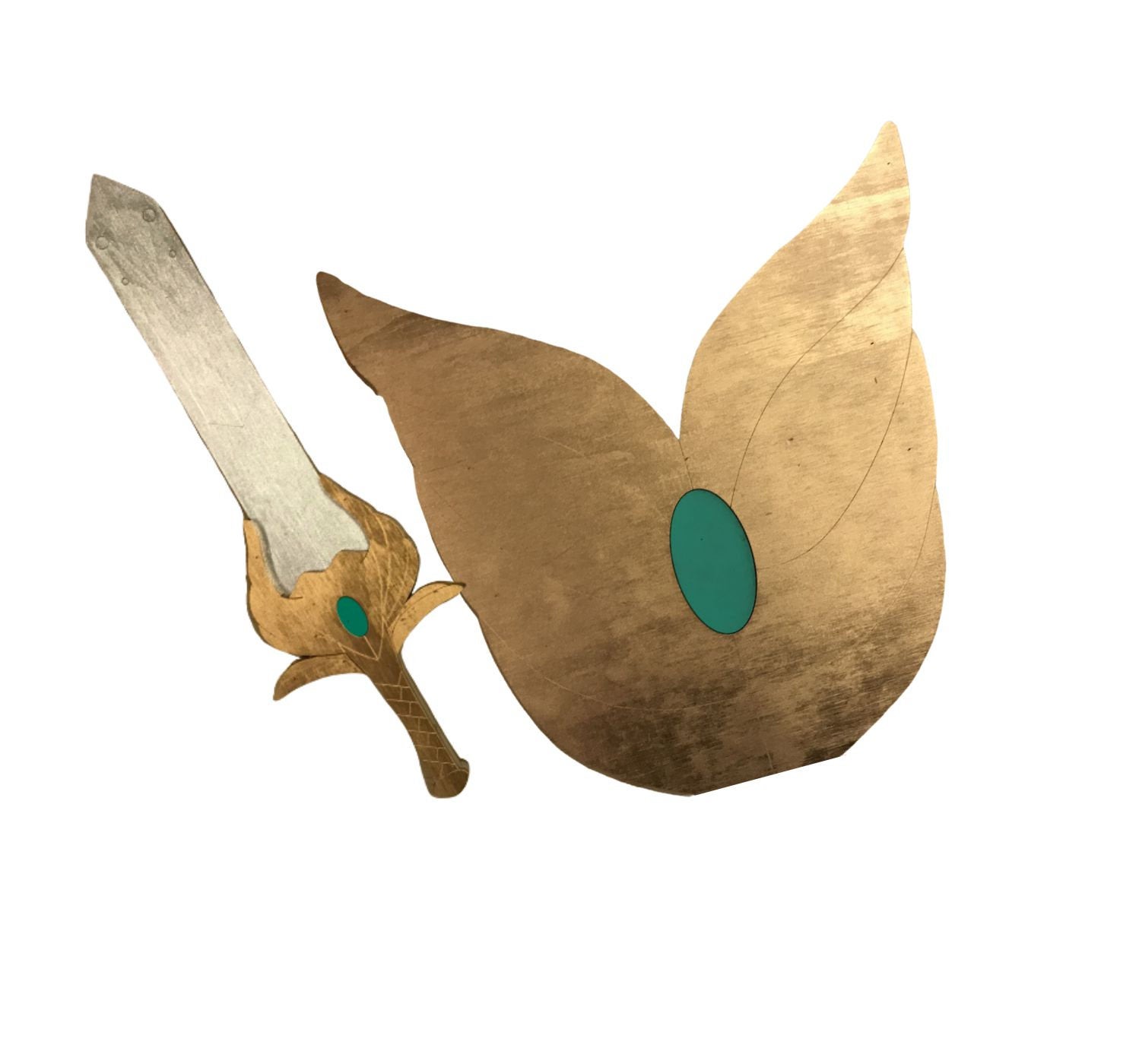 Princesses of Power Shield and Sword costume replicas are durable and lightweight. Hand crafted from layered ¼” thick wood, providing structure and remarkable detail to create a replica as close to the original source as possible. Specifically we sand, prime, paint, glue and micro nail each layer together creating a strong and durable fully immersive cosplay accessory. Subsequently creating a highly decorated replica piece made for the imagination. However, we do not encourage actual LARPing as paint and more delicate sections are prone to damage on collisions.
