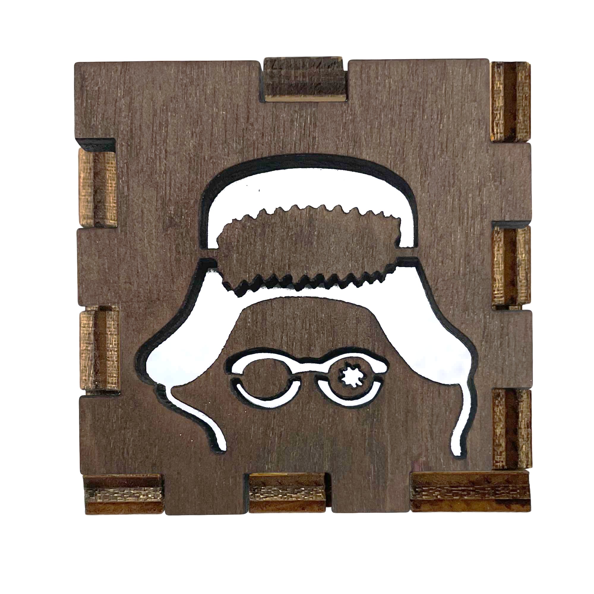 Like all our Interactive Light Boxes, this front is laser-cut from wood and stained brown for a rustic look. It fits perfectly into our 2” cube light boxes, which come with a white LED tealight and six colored vellum filters: Red, Green, Blue, Yellow, Pink, and White.