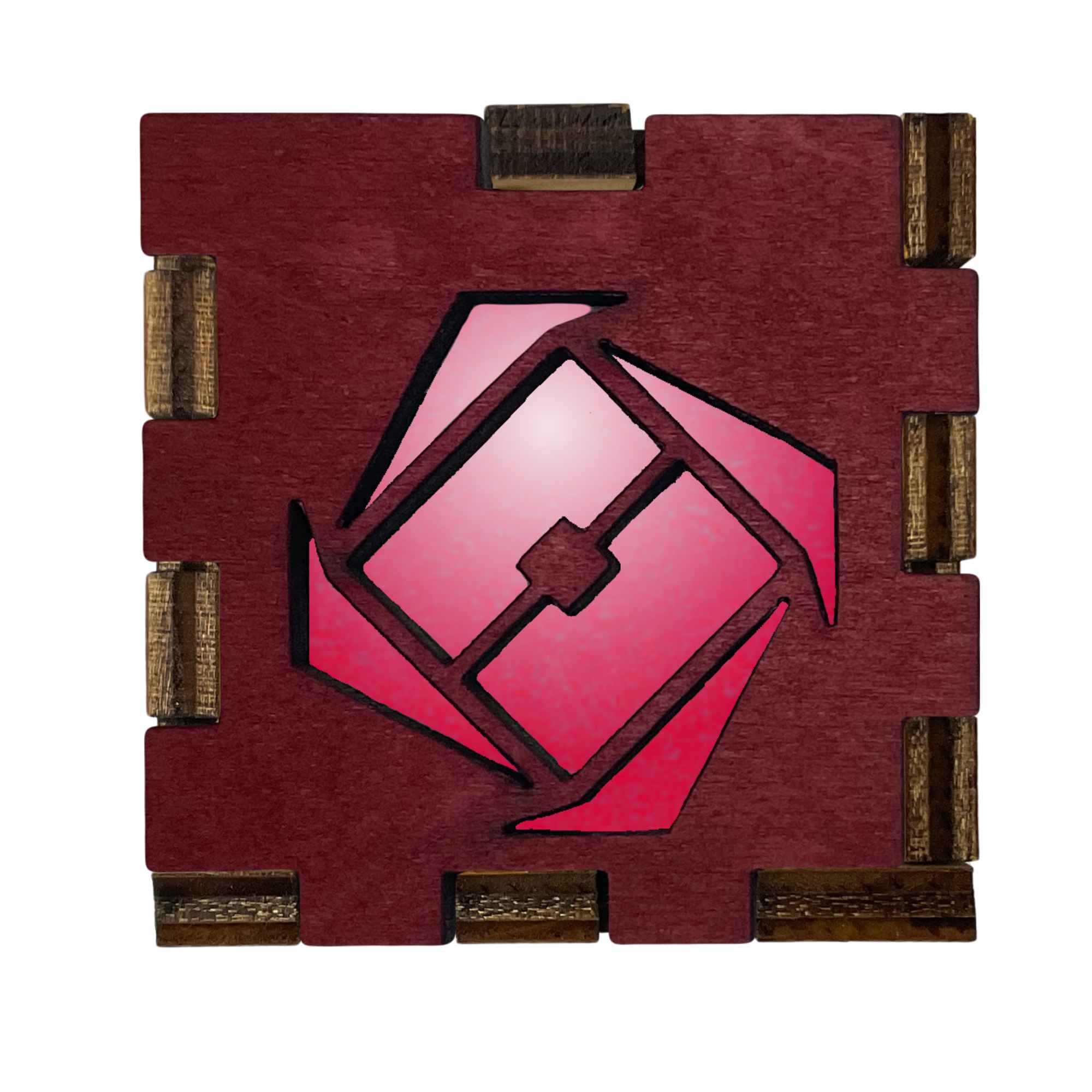 The box comes fully assembled measuring at approximately 2″ on each side making it an easy fit wherever you wish to place it. Whether it be on a bedside table, dresser, work desk, shelf, or anywhere you wish to show it off.  The front of the box has an original cut through design, allowing the light to escape through the front, giving a beautiful glow.