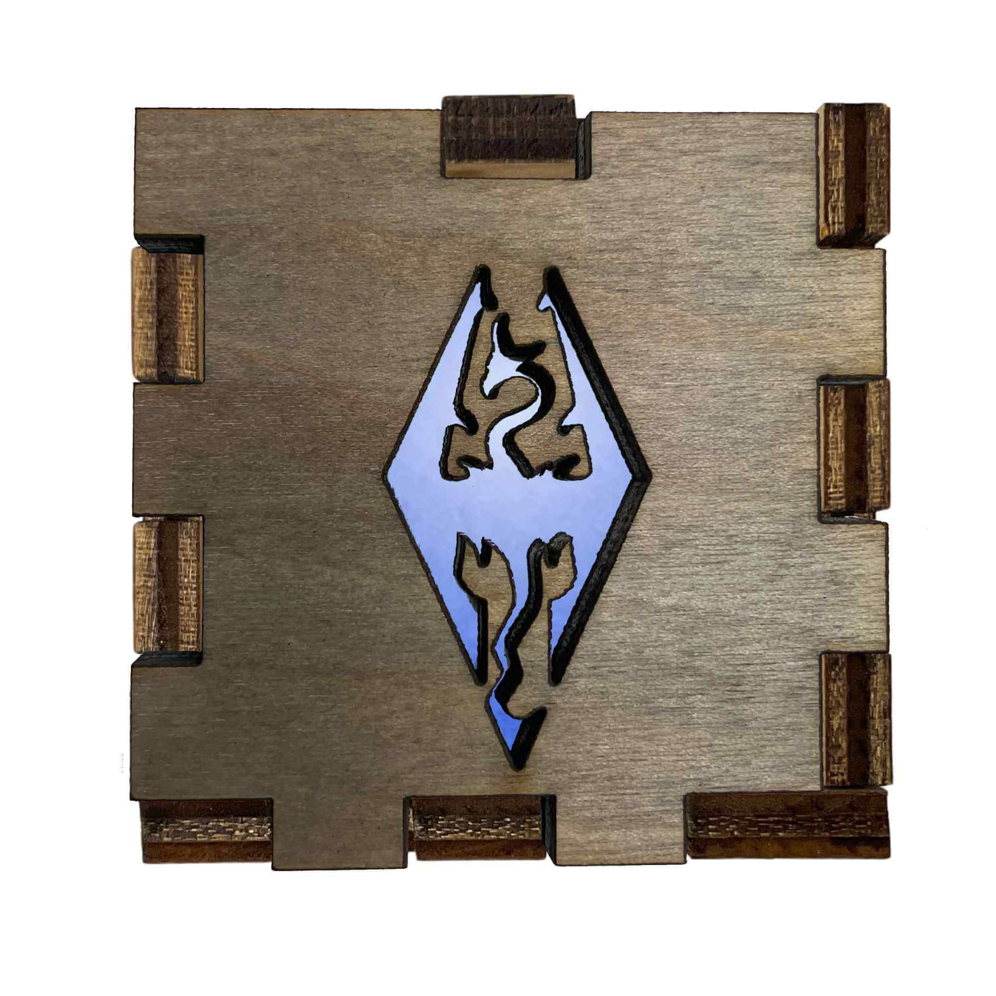 The Skyrim Tea Light Box is a unique way to show off your ever-changing interests. With interchangeable fronts the box can stay up-to-date with whatever your current favorite fandom is. Likewise they make perfect gifts for the person who seems to have a new hobby, fandom, or trend every week. Easily change out the front by simply removing the lid, place your thumb behind the front and push forward. Exchange with any of our other Tea Light Fronts to produce a completely different looking box. One box, multiple fronts.