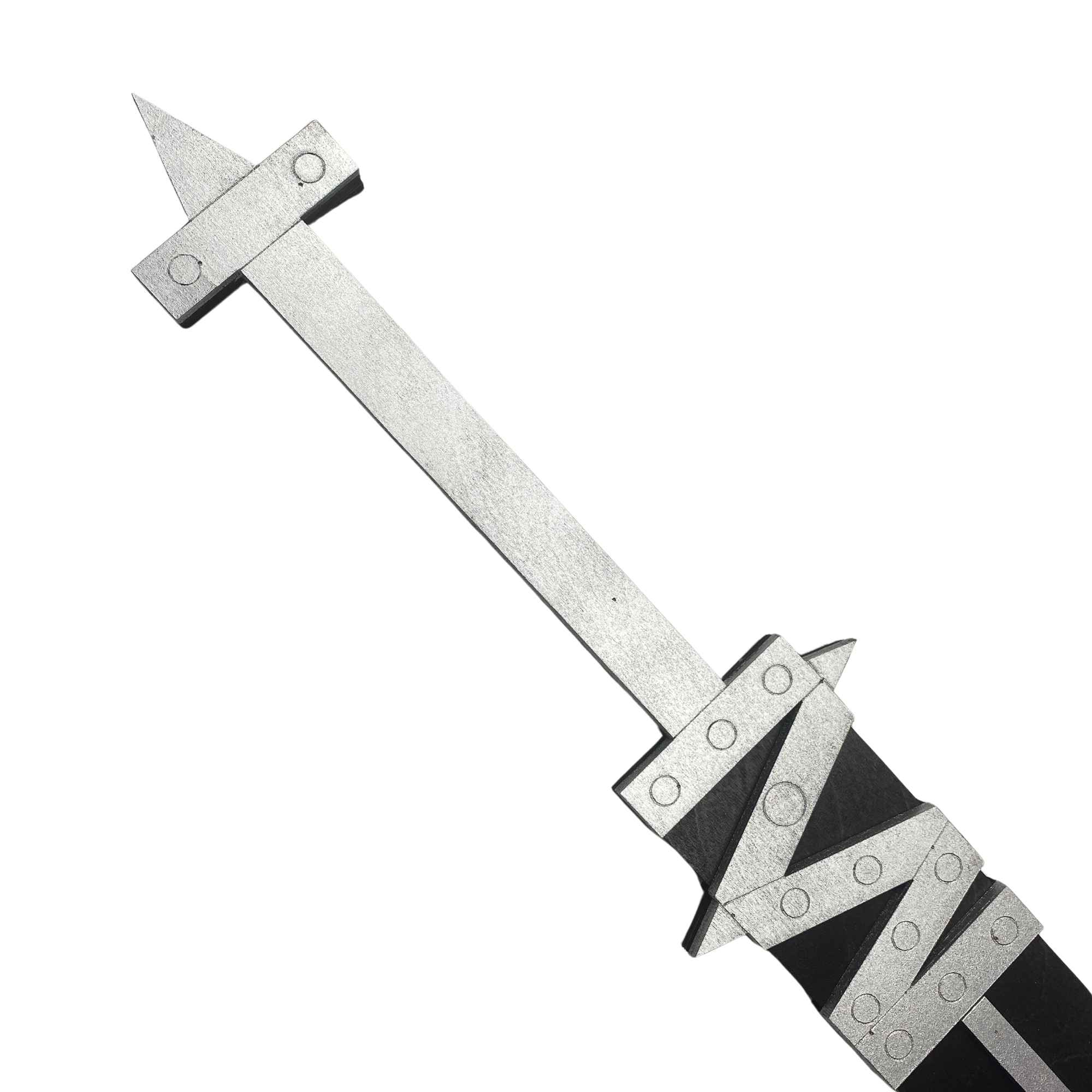 From the popular anime Soul eater comes Crona’s Ragnarok. Looking for a fearsome sword to use as a cosplay prop or just want to get Ragnarok off your back for a while? Then you need Crona’s Ragnarok in weapon form. Inspired by the demon sword Ragnarok, wielded by Crona in Soul Eater. This handcrafted wooden sword is 31″ long, 4″ at its widest point, and incredibly lightweight. Only weighing at just around a pound it makes it easy to carry or hang on the wall. Detailed with black paint to create the base and silver painted accents along the top. Thus creating a prop that looks like it came right out of the anime! Additionally our version doesn’t yell at you like Ragnarok does to Crona.