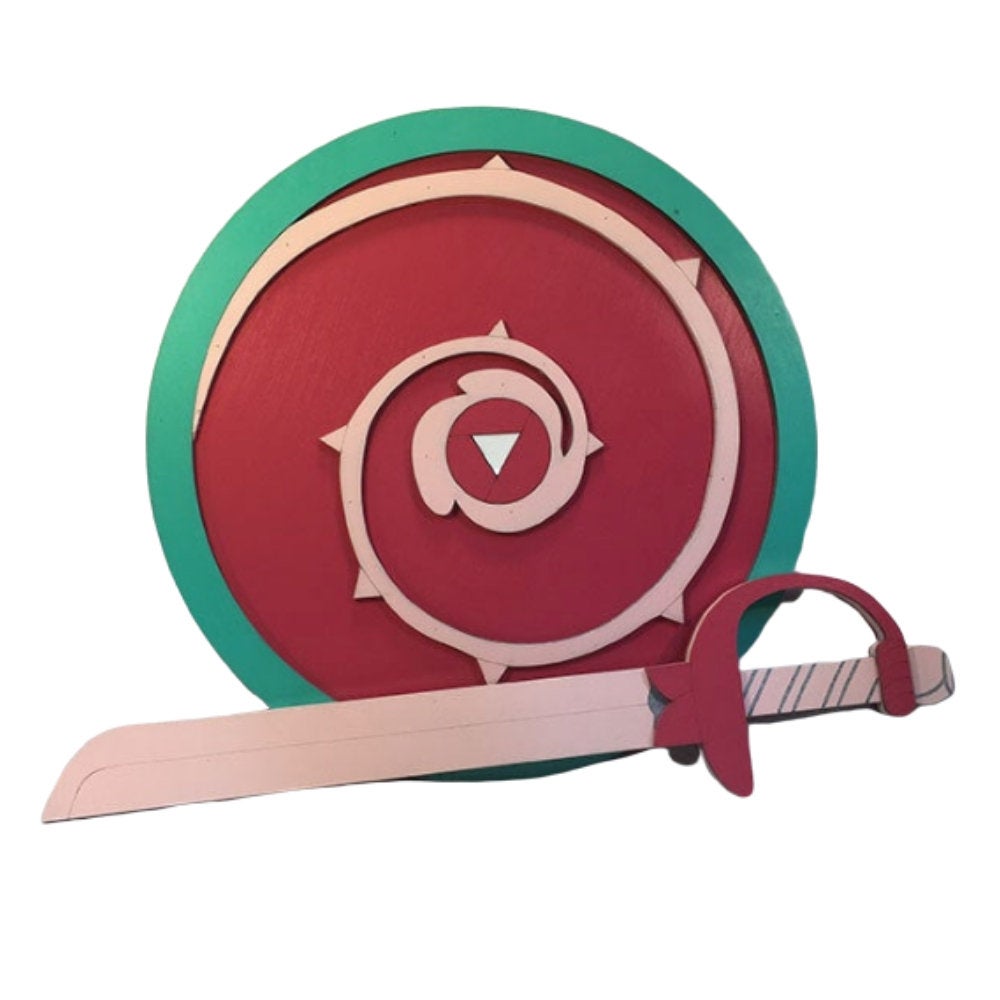 Layered ¼” thick wood ensures each Rose Quartz Sword, Shield, and Scabbard achieves strength and fine detail. We sand, prime, paint, glue, and secure each layer with micro nails, creating a solid and authentic cosplay accessory. Designed for display and gentle handling and may not withstand heavy impacts from live-action role-playing (LARPing).