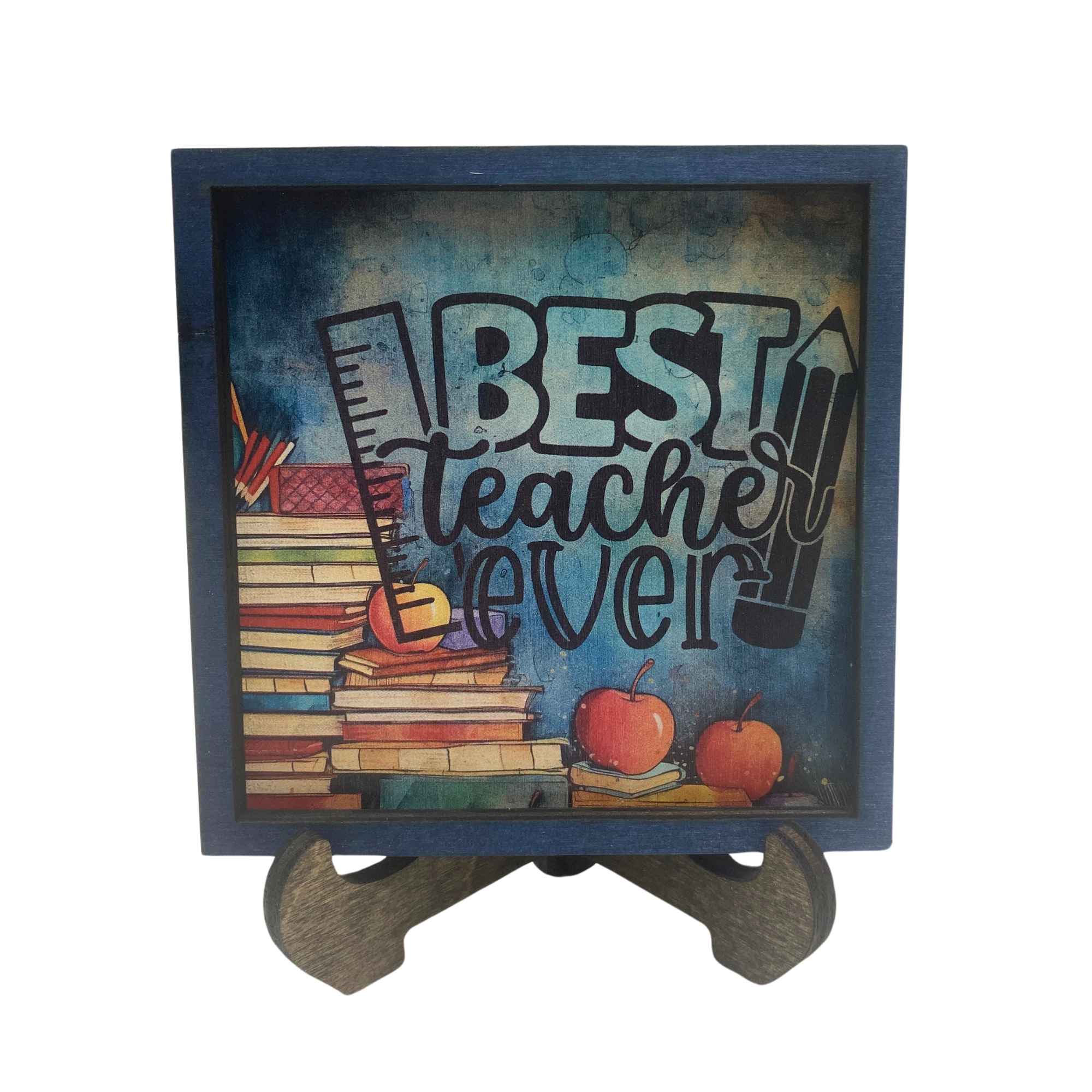 Best Teacher Ever: The sign proudly displays the words “Best Teacher Ever” in a charming font, showcasing an inspiring message. A beautiful designed background that adds a touch of elegance to any setting, while the blue frame perfectly complements the overall aesthetic. It’s a versatile gift that fits seamlessly into any classroom decor.