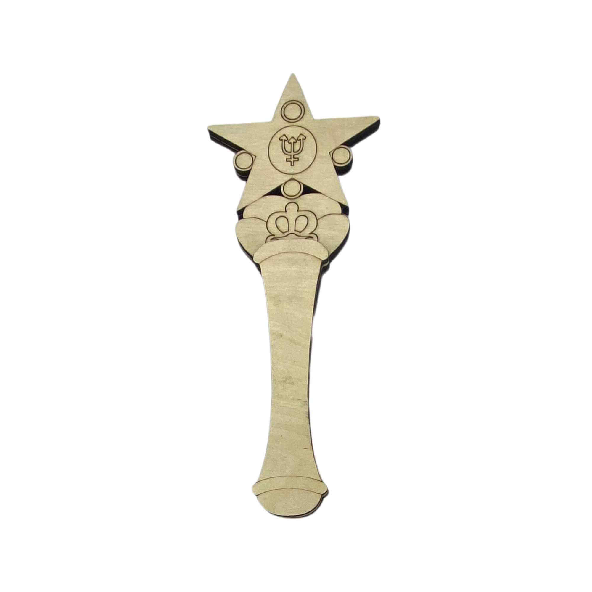 Our Unpainted Sailor Moon Scout Wands are a more economical option or if you want to add your own creative touch on our piece. It is an unfinished option which means you need to sand, prime and paint and is offset by the discounted price. However, the replicas have been completely glued and pinned so the only additional cost for you would be the sandpaper and paint. Each prop is made from wood and are lightweight. Thus making an all day easy to carry prop or easy to hang your finished piece as a wall accessory. Inspired by the classic anime and perfect activity for all of your Sailor Moon Scout Friends.